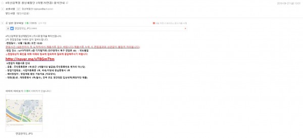 4. [안내] 4차산업혁명 청년체험단 합격자 예비소집(사전교육) 메일